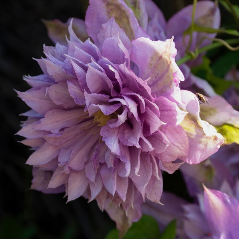 Умереннорастущий сорт клематиса Proteus (2-2,5 м) отлично подходит для любителей спокойных тонов. Глубокий лиловый цвет обволакивает умиротворённостью, хочется растворится в нём полностью. Густомахровый цветок этого сорта клематиса в диаметре достигает 14-18 см. Чашелистики объёмные у основания, сильно текстурированные ближе к центру, становятся тоньше к концу, концы заостряются и сильно волнятся. Пыльники ярко-жёлтого цвета.
