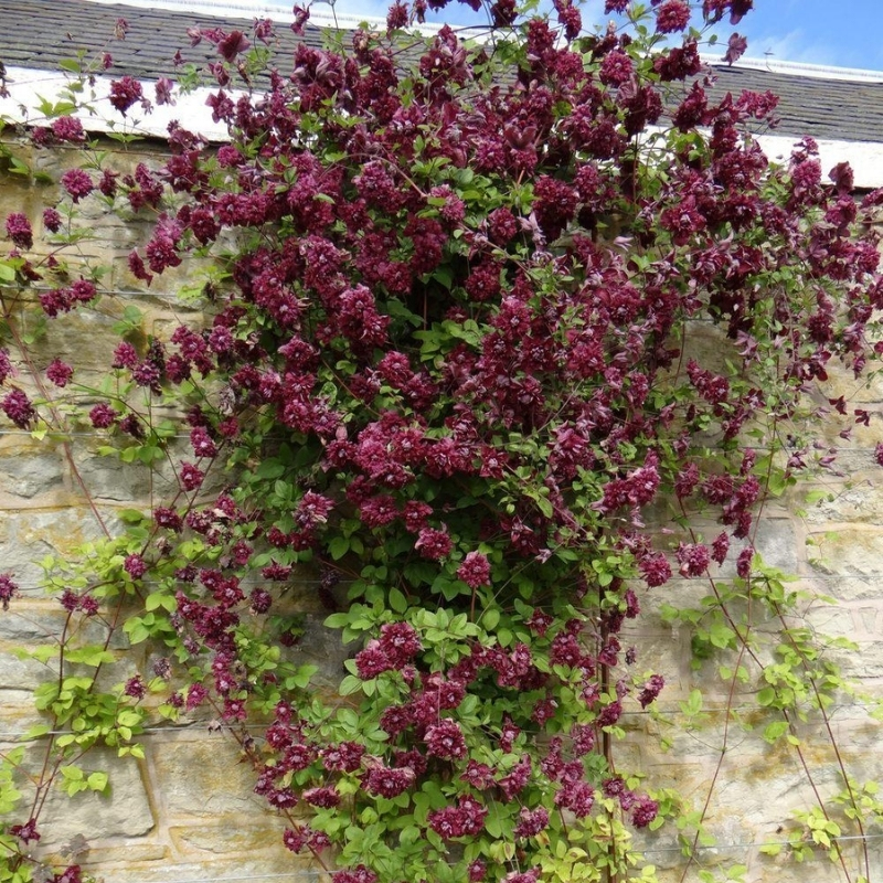 Поражающй своей роскошью клематис Пурпуреа Плена Элеганс будет радовать Вас своим роскошным цветением весь летний сезон, начиная с июня и заканчивая сентябрем. Не смотря на небольшой цветок диаметром всего 5-8 см, вы останетесь довольны, наслаждаясь его густомахровыми цветами темно-бардового цвета. Отличительная черта клематиса сорта Purpurea Plena Elegans заключается в полном отсутствии тычинок и необычной сильно-текстурированной форме чашелистиков.