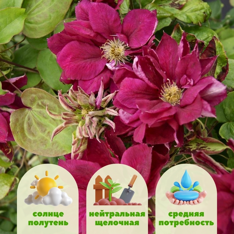 Условия заказа: корни клематисов доступны к заказу по-штучно, минимальный заказ 1 шт одного сорта.