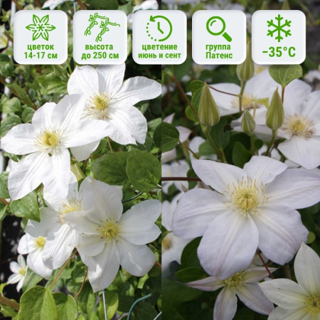 Цвести лиана будет дважды за год, впервые в конце весны (после чего вам потребуется его слегка подрезать) и повторно к осени. Одно удовольствие видеть двор светлым и успокаивающим, сияющие акценты можно расставить в любом месте, так как данный сорт вы можете выращивать в горшке. Клематис энергичный, здоровый и выносливый, не требует вложения большого количества ресурсов.