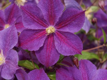 Клематисы – большой род многолетников, включающий около 300 видов и многочисленные гибриды. Садовые сорта в основном состоят из крепких вьющихся растений, таких как C. jackmanii , но также включают кустарниковые, прямостоячие виды (C. Recta) , травянистые виды, отмирающие зимой, (C. integrifolia) , и не цепляющиеся почвопокровные, такие как C. jouiniana.