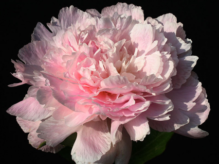 Желанный сорт пионов Pecher распускается густо-махровыми цветками, нижний ряд состоит из крупных лепестков, а вершину наполняют мелкие, хаотичные. Цвет у него необыкновенный, очень бледный розовый. Так получается, что на одном кусте встречаются разные по интенсивности цветы, начиная от практически белого до розоватого. Такой переход придаёт характер цветку и некую самобытность. Размер цветов средний, так при полном роспуске они не превышают 14 см. В цветение вступает в конце мая и может захватить частично июнь. Аромат очень лёгкий и нежный.