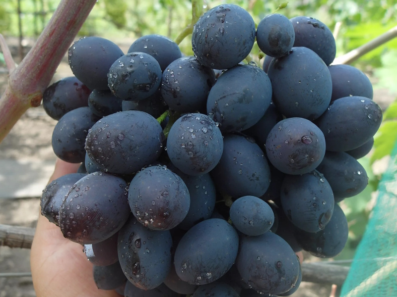 Каталония был выведен из таких сортов, как Бордовая мантия, взяв у него внешние характеристики, и Талисман, наделившего виноград его дивным слегка терпким вкусом. Ягоды красивые крупные 15-18 г, имеют овальную удлиненную форму, длина ягоды около 3,5 см. Мякоть у такой ягоды мясистая, достаточно сочная, сладкая. Кожица плотная, но прожевываемая, темного красно-синего цвета. Грози имеют плотную форму, часто обратно-пирамидальные, очень массивные. Если в первый урожай Вы собираете кисти массой около 500 г, то уже со 2-3 раза вес увеличивается в 2 раза и кисти достигают нередко 1 кг. Созревает довольно рано, требуется 90-100 дней, чтобы Вы могли идти собирать урожай.