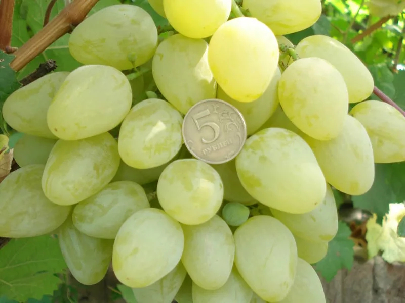 Сорт винограда Монарх пользуется положительными отзывами, а также его знают под названием Павловский (в честь ученого). Виноград Монарх является сортом среднего срока, так как от почки до полного созревания ягоды проходит всего 120-130 дней, что очень порадует северные регионы с небольшой продолжительностью лета. Гроздь винограда цилиндрической формы весом 500-600 гр. Форма ягоды яйцевидная, янтарно-желтого оттенка , весом 15-19 гр. Кожица тонкая, но прочная, что способствует предотвращению повреждения осами.