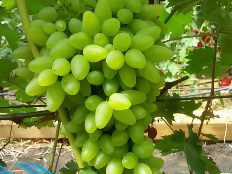 Ранняя форма винограда Подснежник созревает в короткие сроки 105-115 дней. Уже в начале августа можно снимать его с кустов, но если он повисит подольше, он не только не испортится, а наоборот станет только вкуснее. Многие отмечают его красивую форму, ягоды привлекательной сосковидной формы с заостренным кончиком, очень крупные - средний вес 10 г. Цвет медово-зеленый, бочки на солнце приобретают заметный загар. Кожица плотная, средней толщины, пережёвыванию не мешает. Мякоть жидковатая, можно сказать нежная, содержит много сладкого сока, по вкусу гармоничная. Внутри 1-2 небольшие косточки. Сама гроздь достаточно крупная, немного рыхлая, цилиндрическая по форме, массой 500-800 г.
