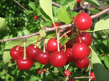 Дерево получается среднорослым, с раскидистой кроной, что делает вишню Десертная Морозовой идеальной для небольших садов и участков. Плодоносит в основном на однолетних удлиненных побегах, но и на прошлогодних тоже всегда есть урожай. Раннеспелая вишня Десертная Морозовой отличается крупноплодностью (4-5г), ярко-красным цветом плодов, длинной плодоножкой, очень сладким вкусом с легкой кислинкой. Созревает в середине июня. Саженцы вишни Десертная Морозовой отличаются хорошей зимостойкостью и устойчивостью к болезням.