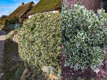 Это вечнозеленый кустарник, достигающий высоты около 2-3 м и ширины около 1,5-2 м. Его овальные глянцевые листья темно-зеленого цвета с тонкой кремово-белой оборкой, остаются сочными 365 дней в году. Если вас не устраивает её исполинский рост, то куст можно просто обстричь и держать на нужном вам уровне. Хотя бересклет Кэтти именно потому и выбирают, так как хотят изолировать пространство, наполнив его природным энергичным зеленым цветом и скрыв профнастил забора.Растение предпочитает солнечные или полутенистые места и хорошо переносит условия городского озеленения. Бересклет японский Кэтти не предъявляет высоких требований к почве, главное, чтобы она была хорошо дренированной. Это медленнорастущее растение (20 см в год), что позволяет легко контролировать его размеры и форму при помощи обрезки. Зимостойкость средняя до -23°C.