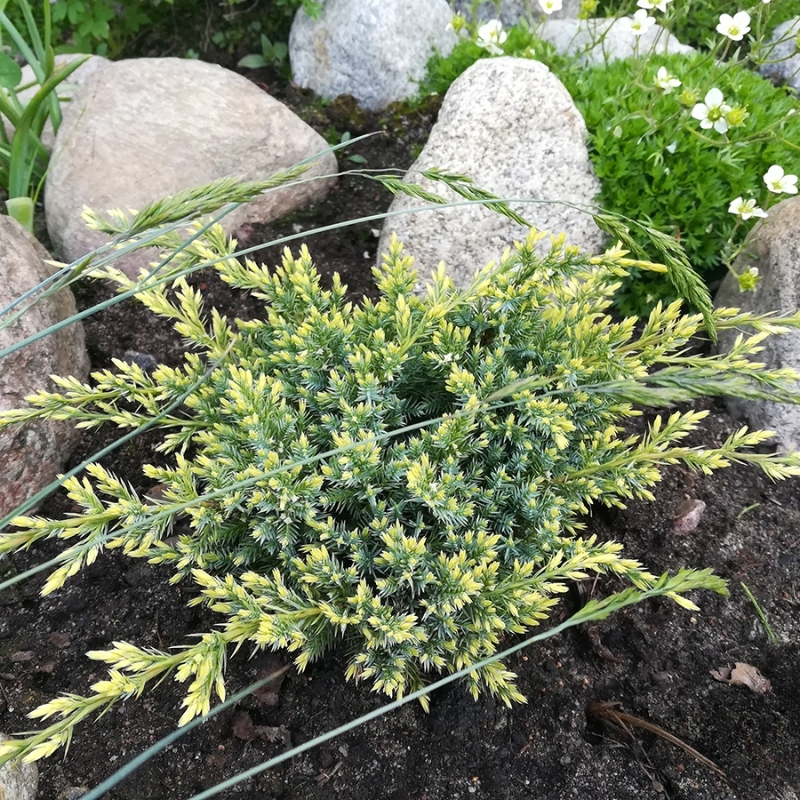 Особое внимание к себе этот компактный хвойный красавец приковывает именно весной, когда появляется новый пророст и куст долгое время стоит ”светящимся”. Словно утренние лучи замерли на его раскидистых лапах. Можно точно сказать, что можжевельник чешуйчатый Холгер (Holger) — это растение, которое добавит вашему саду света даже в пасмурные дни.