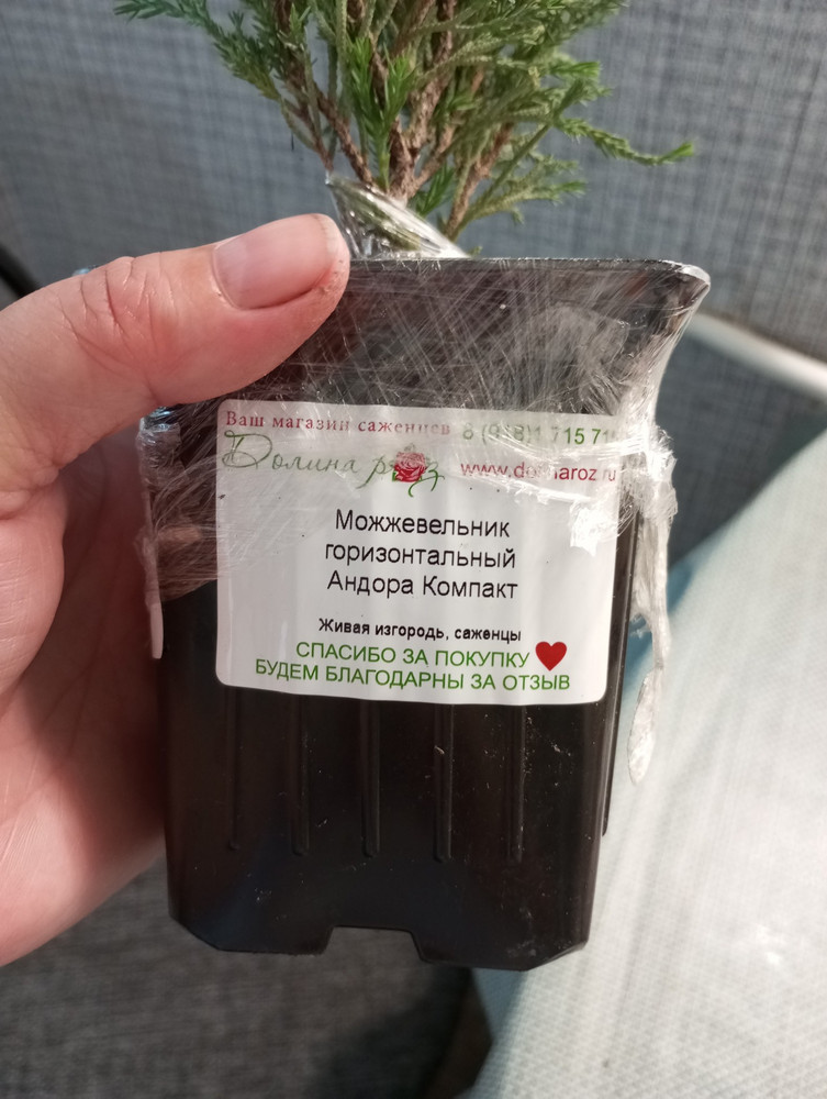 Корневая система саженца можжевельника Андора Компакт для отправки заказчику упаковывается в индивидуальную упаковку из торфяной смеси, укутанной в пленку, благодаря чему ваш саженец придет живым и полным сил.
