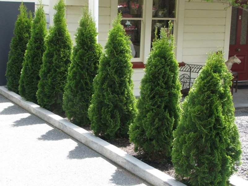 То, что данная туя весь год стоит в изумрудном облачении, делает её еще более красивой и декоративной. Ежегодный прирост у нее составляет примерно 10 см в высоту и 5 см в ширину. Очень медленно, но верно туя стремится к своему истинному росту, который может достигать 5 м в высоту, при этом диаметр кроны около 2 м. Так как сорт этот из семейства кипарисовых, то и форма её чем то напоминает сам кипарис. Силуэт стройный, остроконечный, дополнительные очертания придаются обрезкой. Хвоя мягкая и пушистая, всё деревце кажется сбитым и плотным.Этот сорт идеально подходит для оформления живых изгородей, групповых и одиночных посадок, а также для создания красивых композиций в ландшафтном дизайне. Обязательно дополните её белоснежными шапками древесной гортензии или вьющимися клематисами.