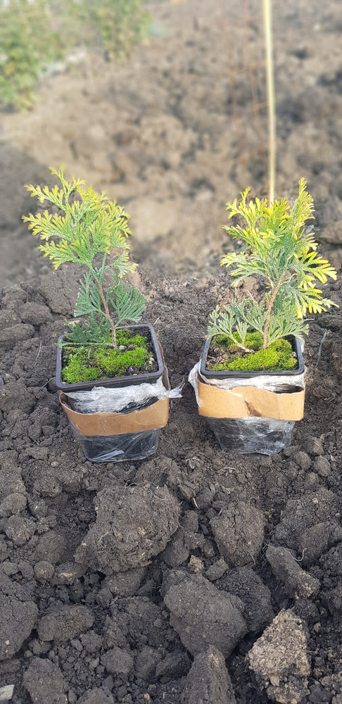 Корневая система саженца туи западной Янтарь для отправки заказчику упаковывается в индивидуальную упаковку из торфяной смеси, укутанной в пленку, благодаря чему ваш саженец придет живым и полным сил.